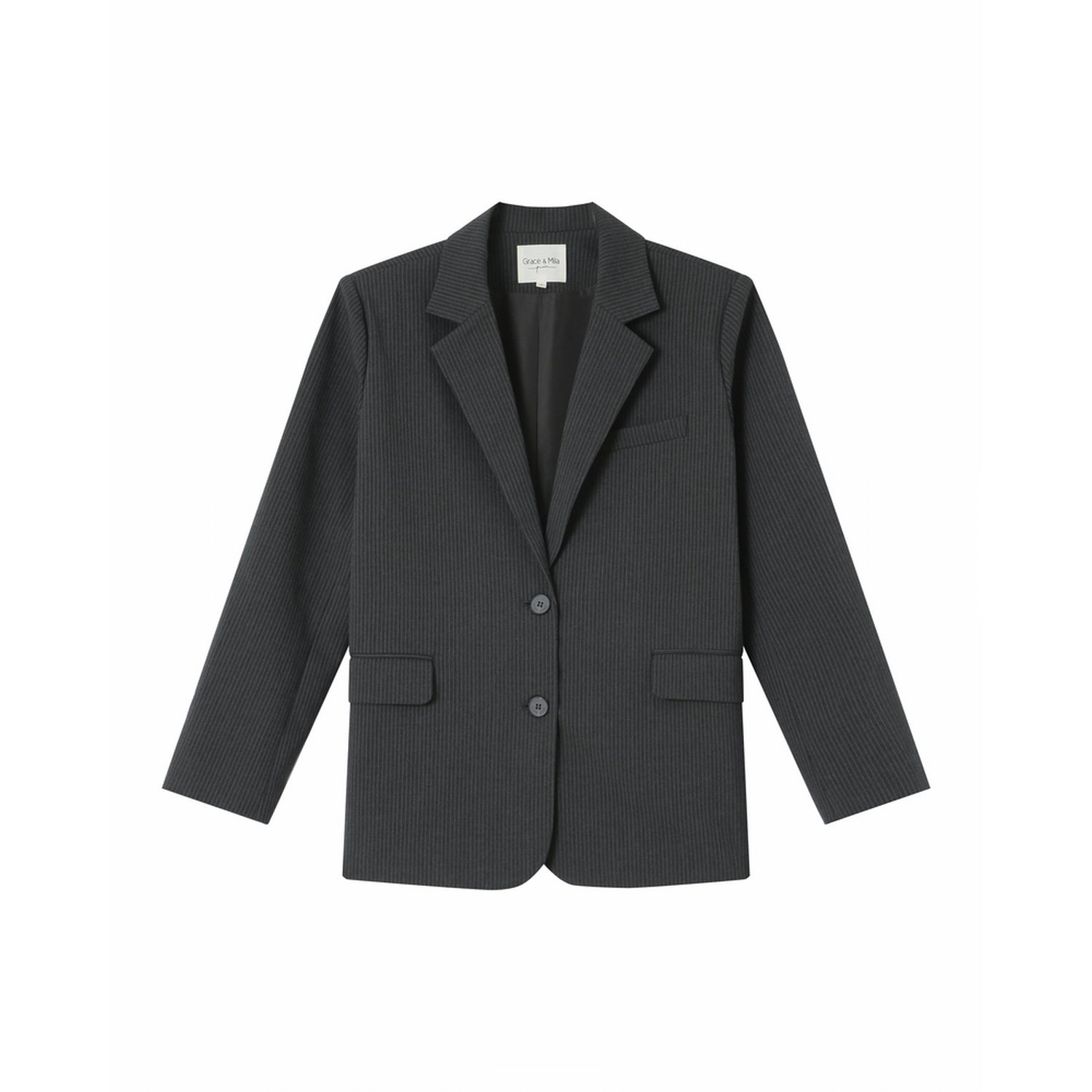 SILLY è un blazer dal taglio dritto con sottili righe eleganti, pensato per chi ama uno stile raffinato ma versatile. Il colletto a revers crantato e la chiusura monopetto lo rendono un classico senza tempo, mentre le due tasche con patta sul davanti aggiungono praticità e carattere.