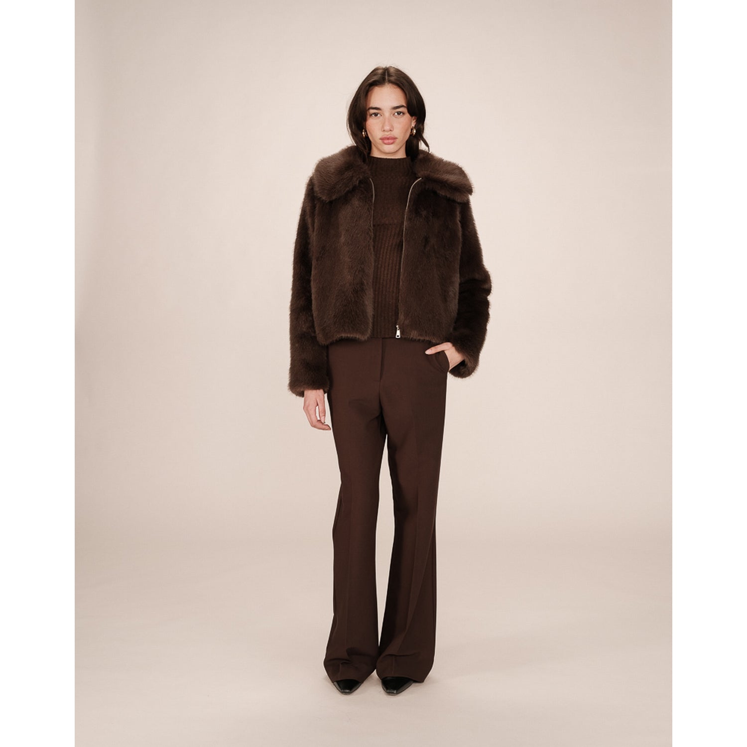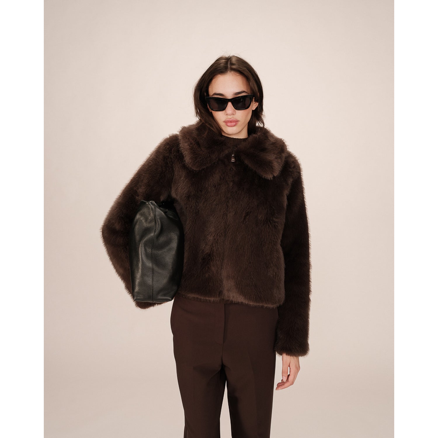SHONNA è un cappotto corto in morbida eco-pelliccia, dal taglio dritto e raffinato. Le maniche lunghe e il colletto a revers gli conferiscono un’eleganza intramontabile, mentre la chiusura frontale con zip aggiunge un tocco moderno.