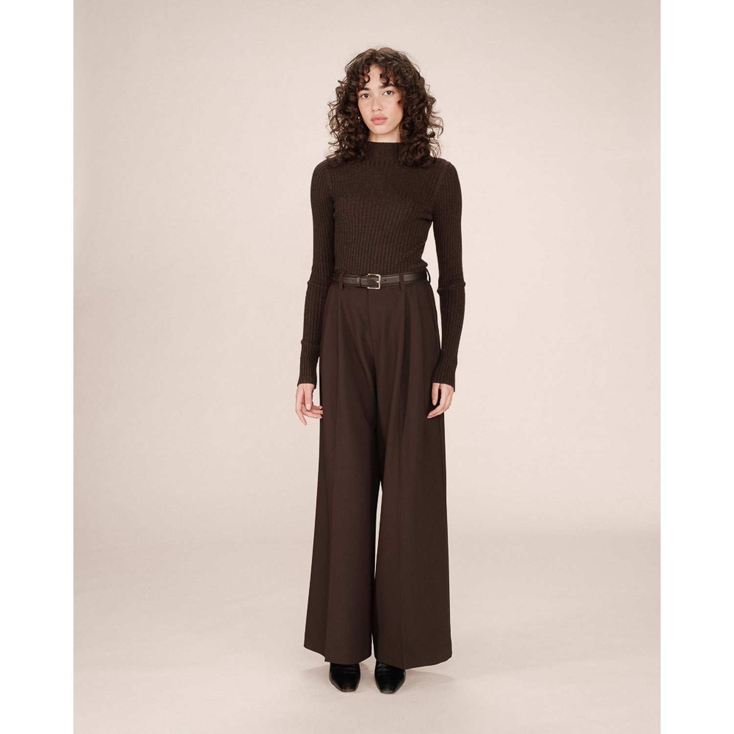 STORY è un pantalone da tailleur dal taglio elegante e contemporaneo. La linea dritta a gamba larga e la vita media creano una vestibilità fluida e sofisticata, mentre le pieghe sul davanti slanciano la silhouette con discrezione.