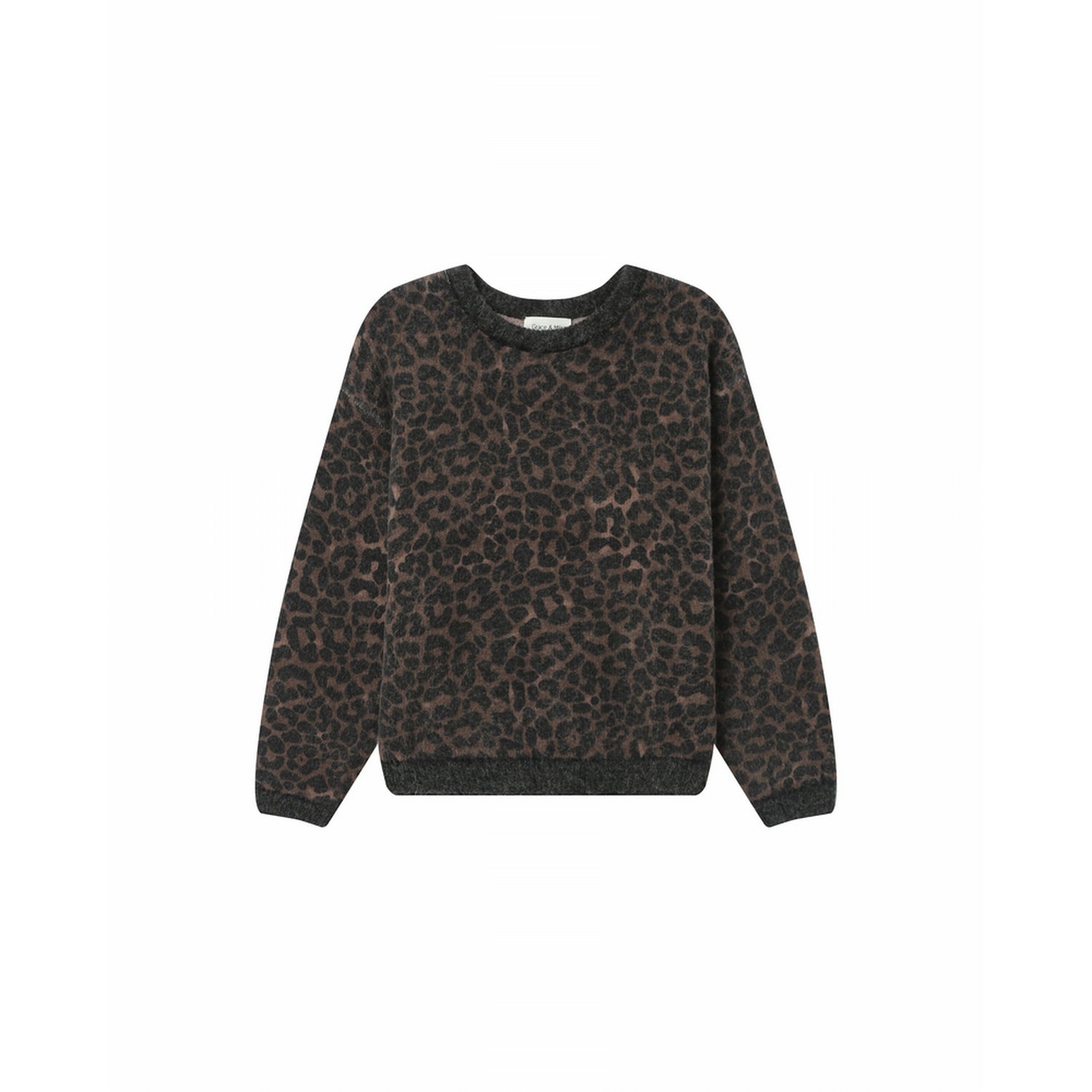 SANTIGOLD è un maglione dal carattere deciso, con un intramontabile motivo leopardato e dettagli a contrasto su scollo, polsini e orlo. La linea ampia e le maniche lunghe lo rendono comodo e avvolgente, perfetto per chi ama unire grinta e stile.