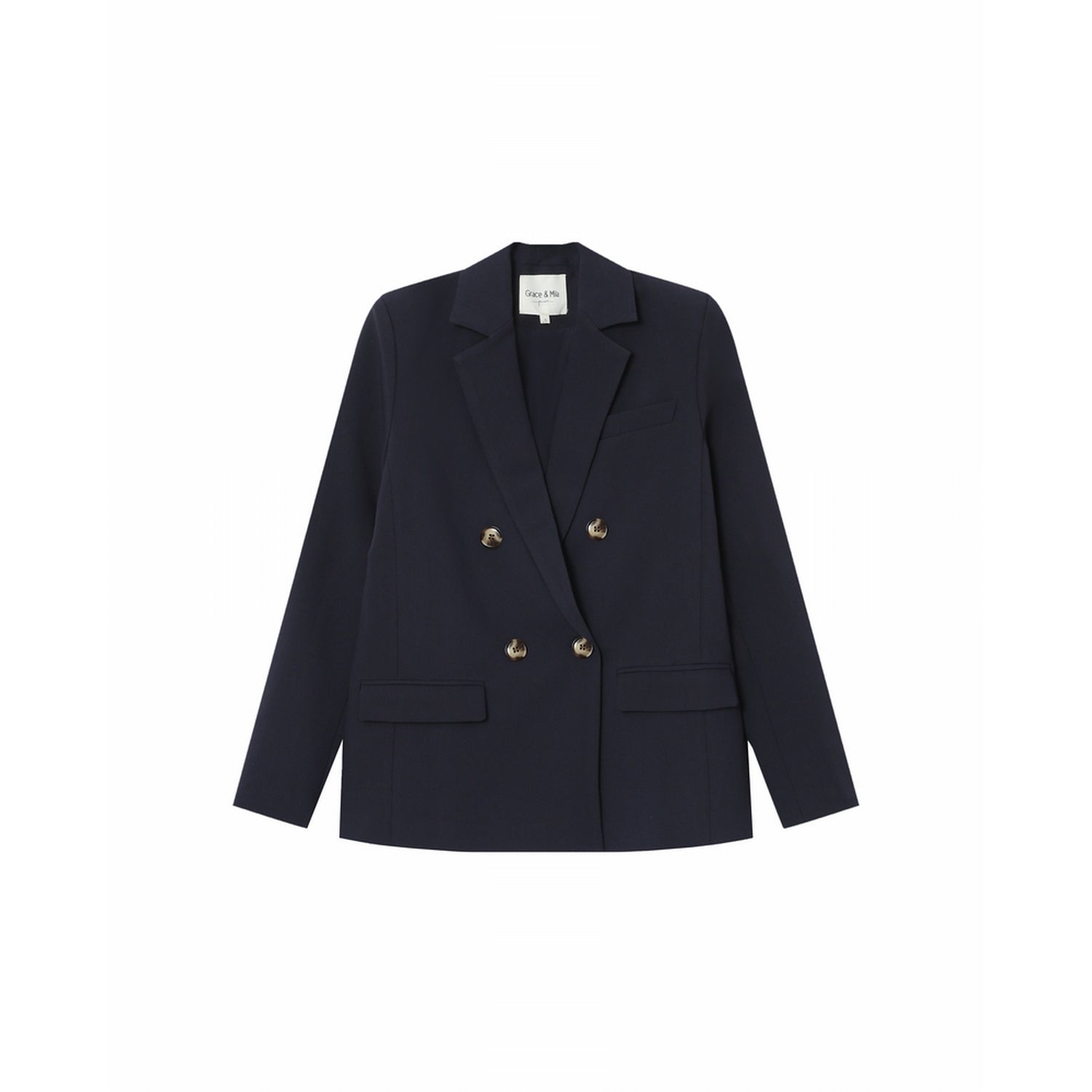 SUREAU è un blazer dal taglio dritto e dal fascino intramontabile. Caratterizzato da una chiusura doppiopetto con bottoni effetto corno incisi G&M, unisce eleganza e personalità. Il colletto a revers crantato e le tasche passepoilées con patta sul davanti aggiungono un tocco sartoriale, mentre la fodera interna garantisce comfort e una vestibilità impeccabile.