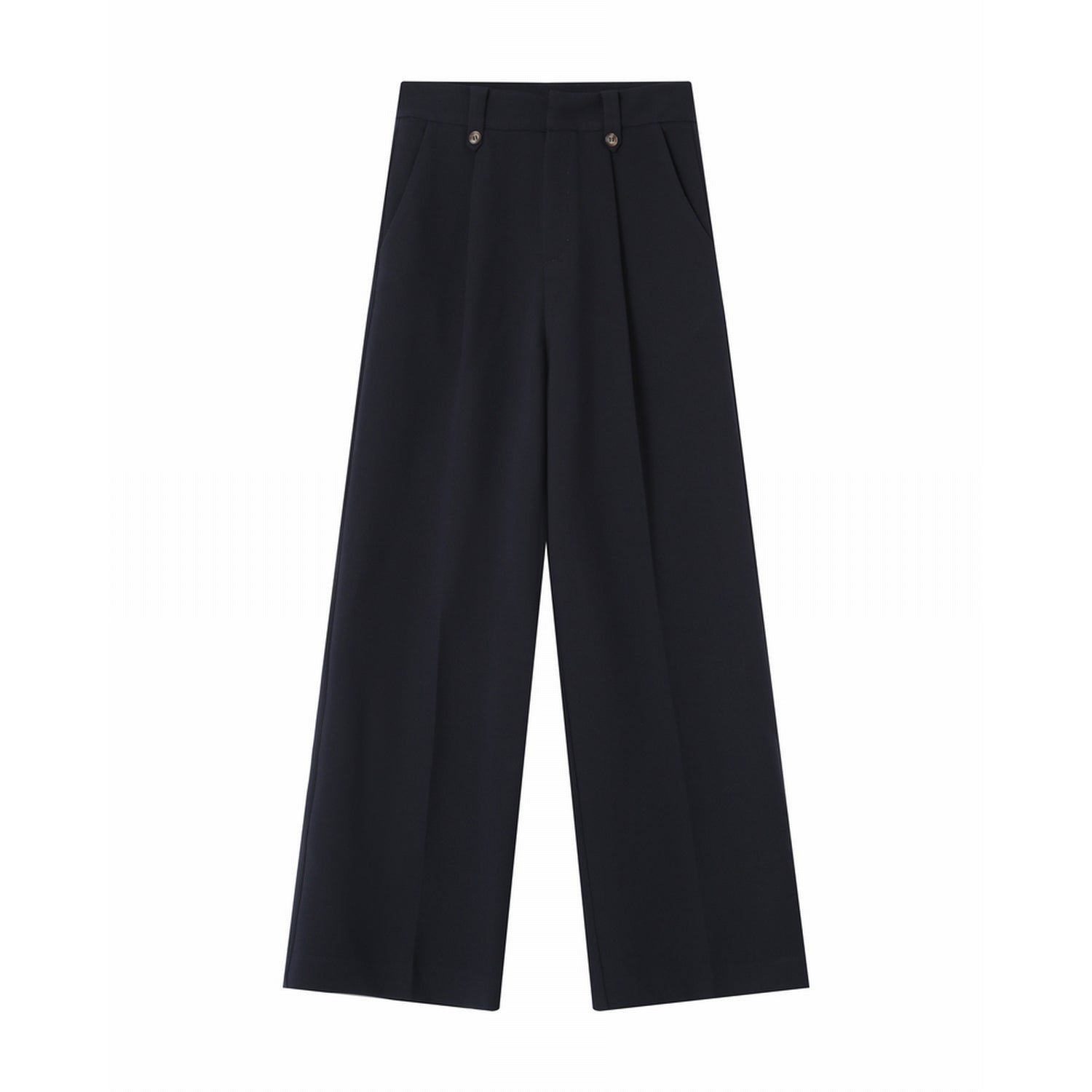 SEPTIME è un pantalone da tailleur elegante e contemporaneo, con linea dritta e vita media. Le pieghe sul davanti donano struttura e raffinatezza, mentre i passanti per cintura arricchiti da bottoni creano un dettaglio originale e distintivo.