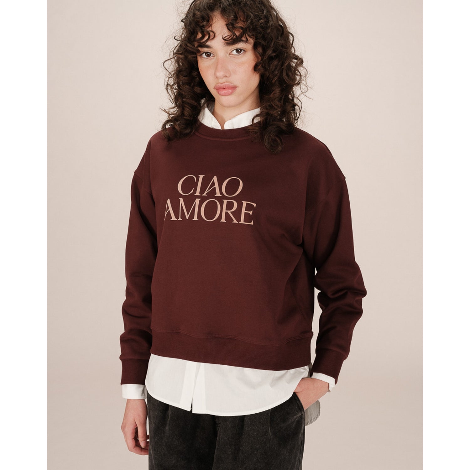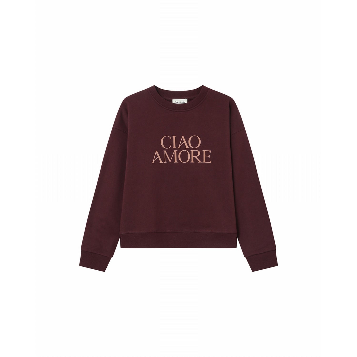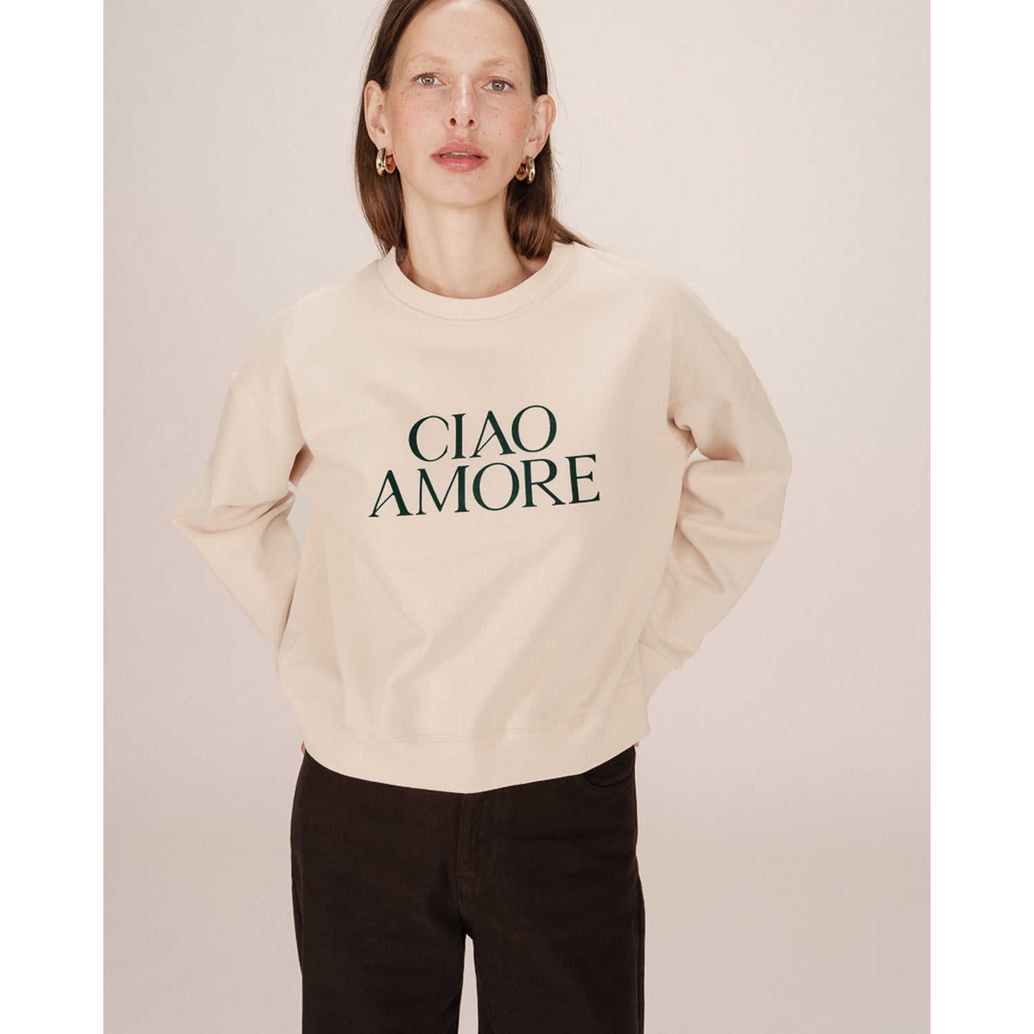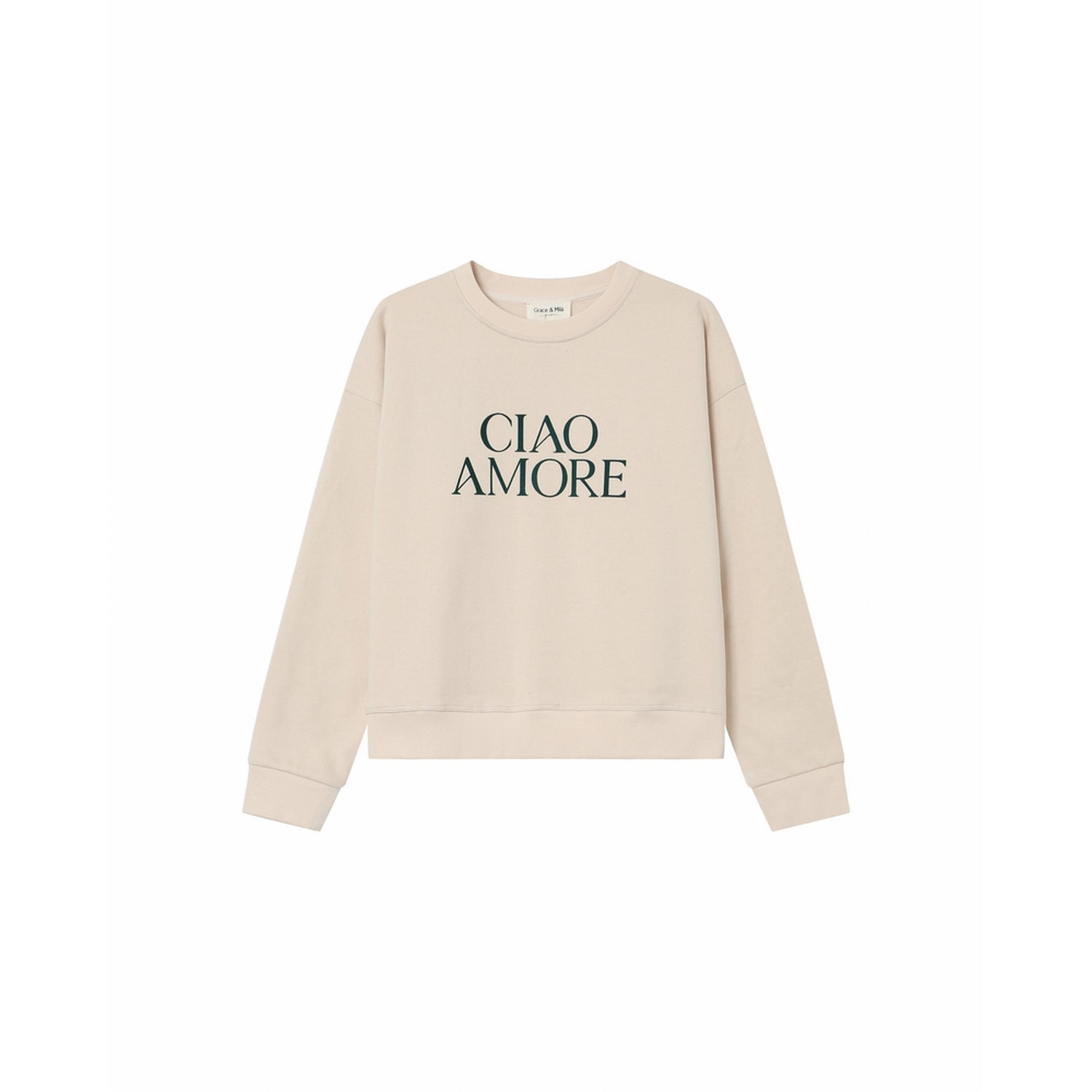 SIGIL è una felpa in morbido mollettone con fit rilassato e un messaggio speciale: “Ciao Amore” stampato in velluto sul davanti. Le maniche lunghe con spalla scesa e il girocollo con finiture a costine le donano un look casual e contemporaneo.