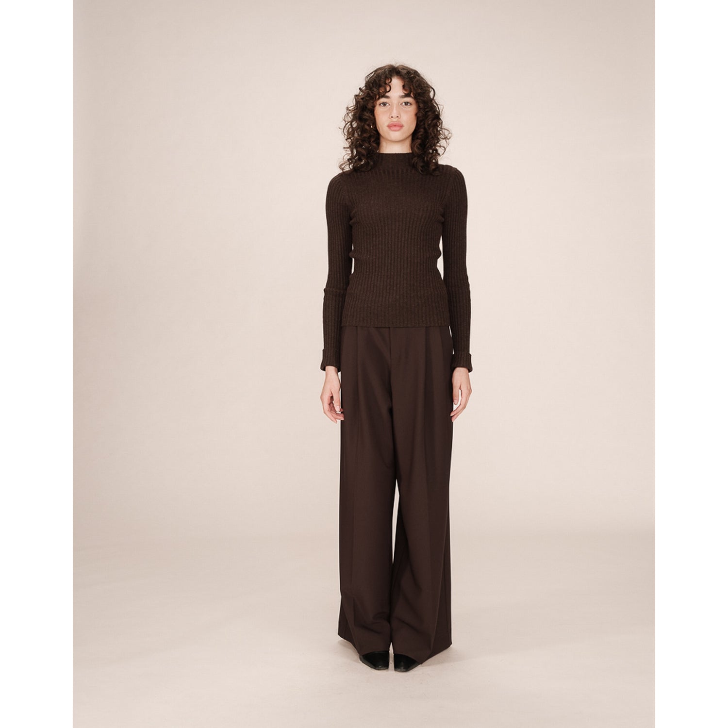 SATURDAY è un maglione in maglia a costine dal fit aderente e raffinato. Le maniche lunghe con risvolto e il collo a caminetto aggiungono un tocco elegante, mentre la lavorazione in maglia fine lo rende morbido e confortevole.