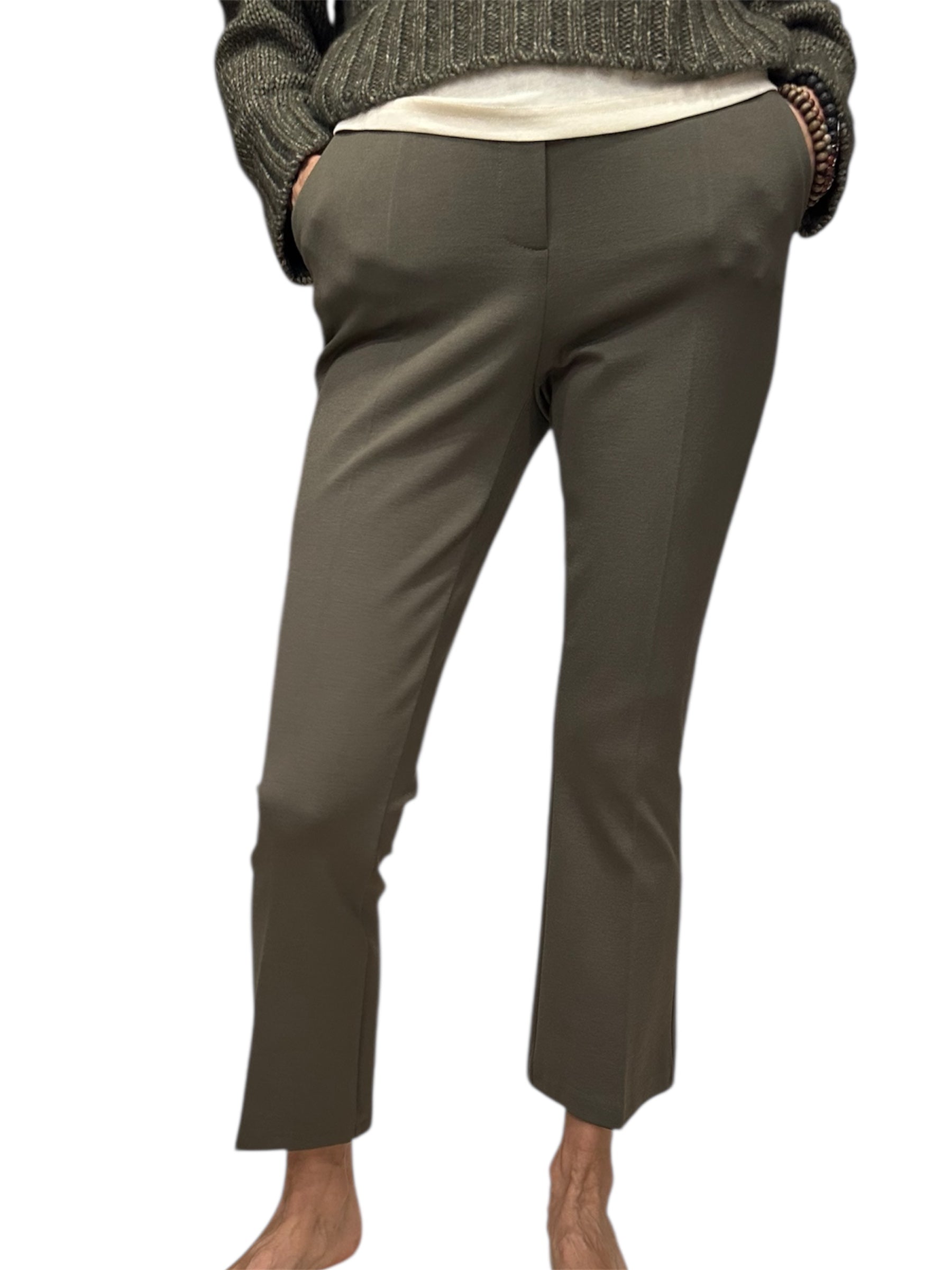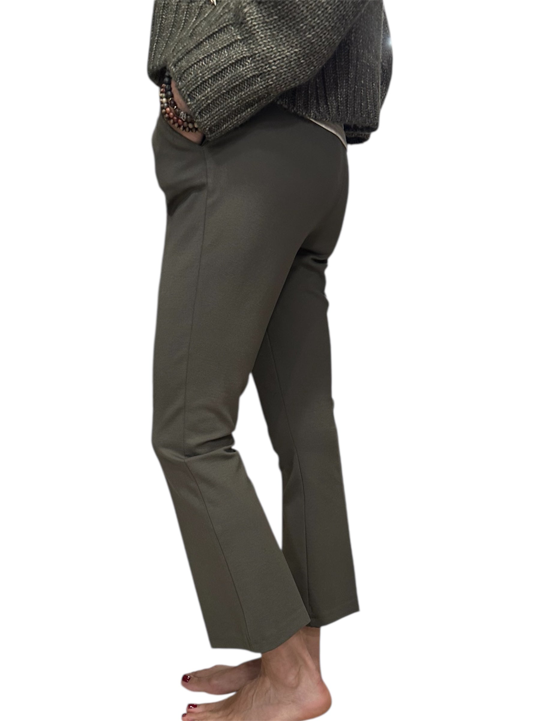 Questo pantalone a trombetta in punto Milano , unisce stile contemporaneo e comfort sartoriale . Caratterizzato da una linea aderente sulla coscia che si apre leggermente al fondo , crea una silhouette slanciata ed equilibrata , perfetta per valorizzare ogni figura . Realizzato in un morbido tessuto punto Milano , noto per la sua struttura compatta ed elasticizzata , offre una vestibilità confortevole e impeccabile che segue i movimenti del corpo senza perdere la forma . Il design pulito con la vita regolare e chiusura invisibile , lo rende un capo versatile , ideale sia per il look da ufficio , che per un'eleganza rilassata nel tempo libero . abbinalo a un blazer per un outfit formale o a una maglia dolcevita per un tocco casual - chic .
